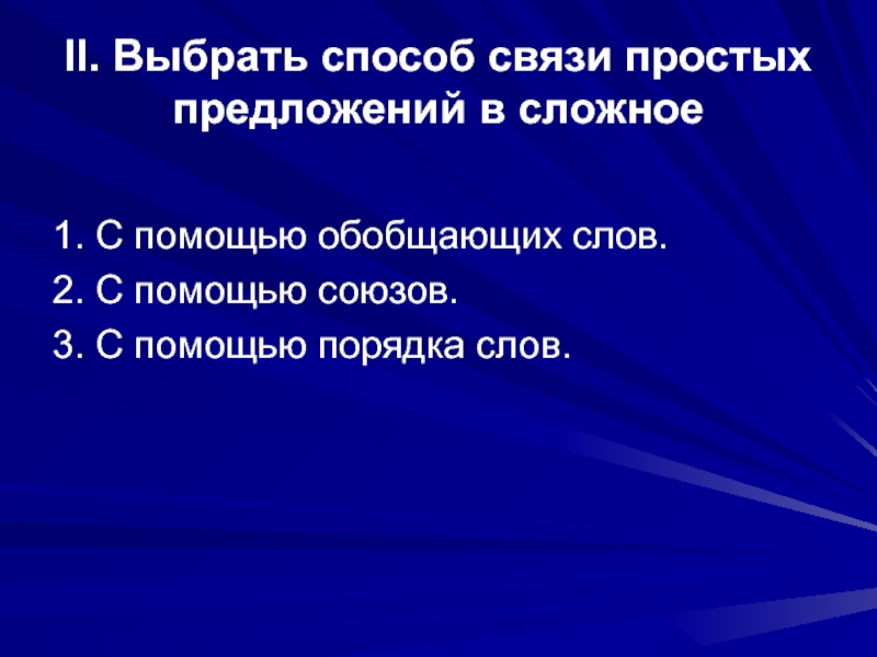 Слайд 10II. Выбрать способ связи простых предложений в сложное