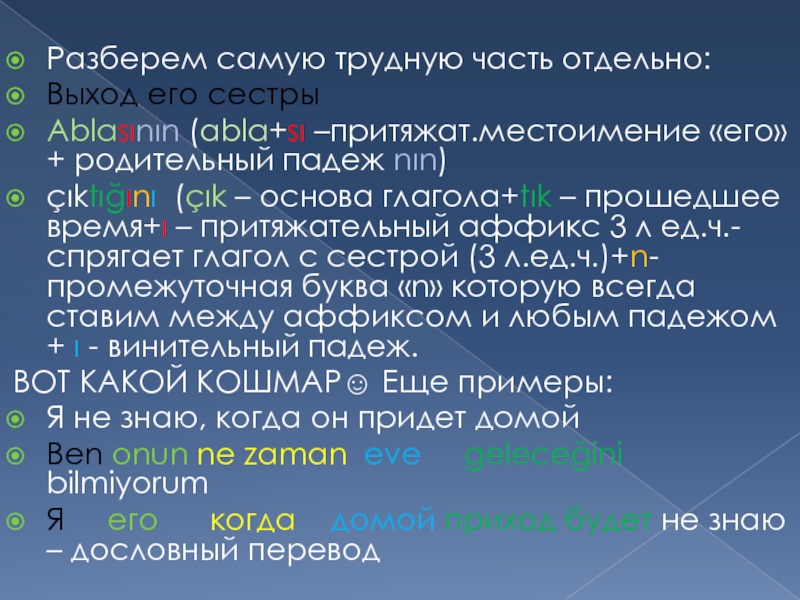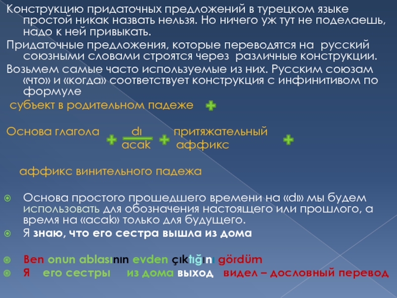Основа простого прошедшего времени на «dı» мы будем использовать для обозначения настоящего или прошлого, а время на «acak» только для будущего.