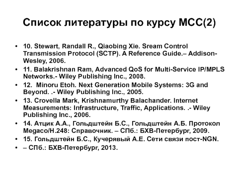Control Transmission Protocol (SCTP). A Reference Guide.– Addison- Wesley, 2006.