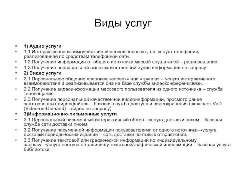 1.1 Интерактивное взаимодействие «человек-человек», т.е. услуга телефонии, реализованная