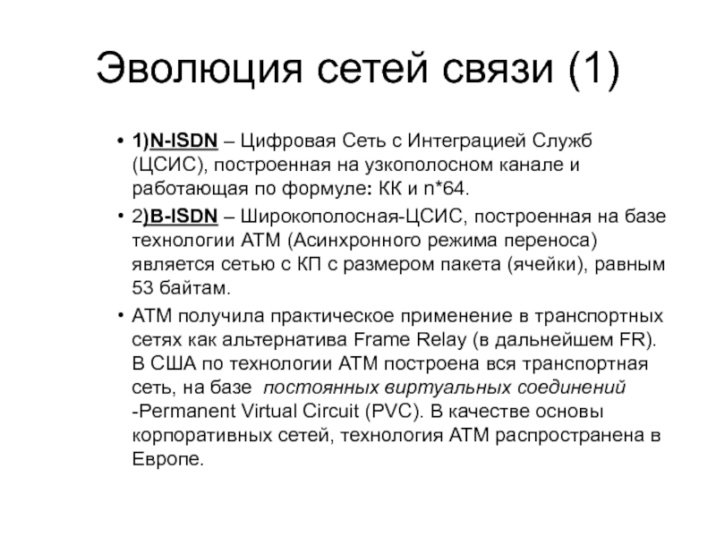 2)B-ISDN – Широкополосная-ЦСИС, построенная на базе технологии АТМ (Асинхронного режима переноса) является сетью с КП с размером пакета (ячейки), равным 53 байтам.