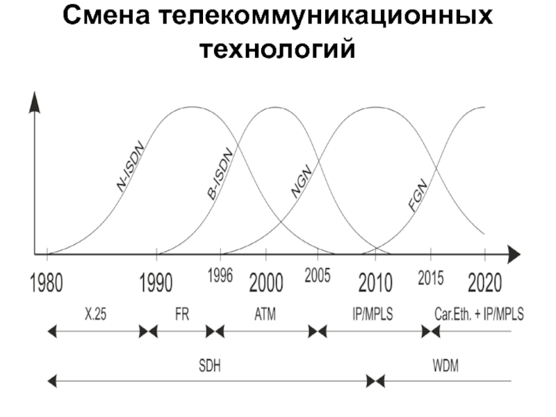 поколения (NGN) – концепция построения сетей связи, обеспечивающих предоставление неограниченного набора услуг с гибкими возможностями по их управлению, персонализации и созданию новых услуг за счет унификации сетевых решений, предполагающая реализацию универсальной транспортной сети с распределенной коммутацией, вынесение функций предоставления услуг в сетевые узлы и интеграцию с традиционными сетями связи.