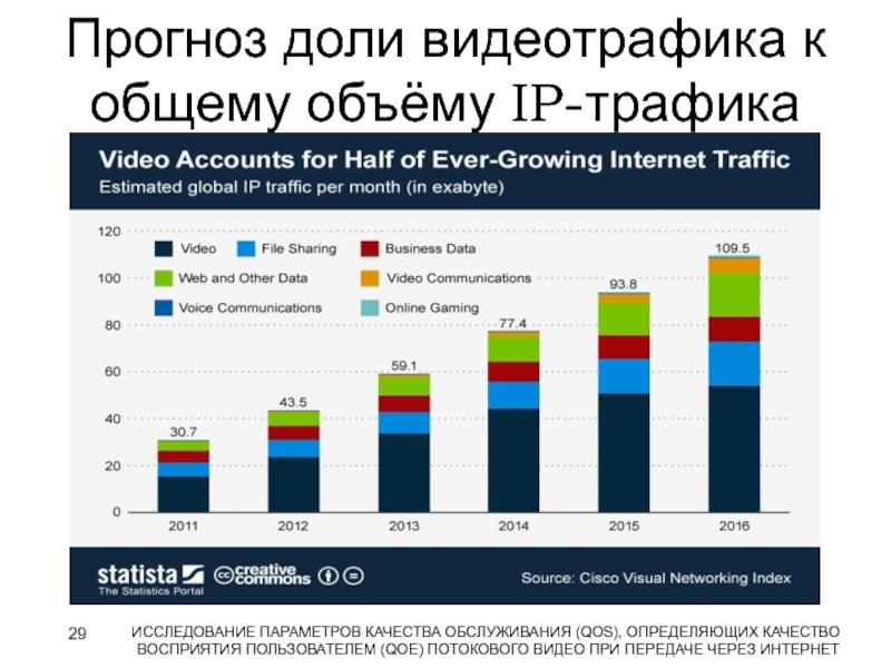 Слайд 29Прогноз доли видеотрафика к общему объёму IP-трафика