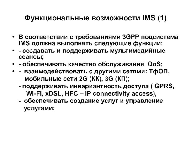 В соответствии с требованиями 3GPP подсистема IMS должна