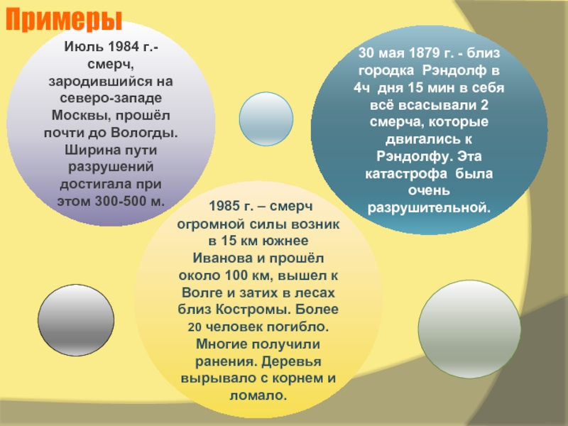 Июль 1984 г.- смерч, зародившийся на северо-западе Москвы, прошёл почти до Вологды. Ширина пути разрушений достигала при этом 300-500 м.