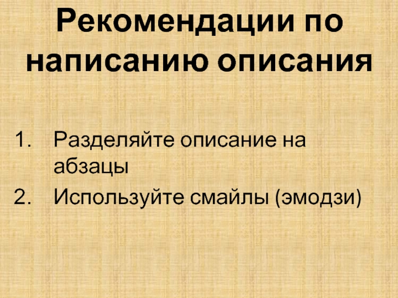 Слайд 22Рекомендации по написанию описания