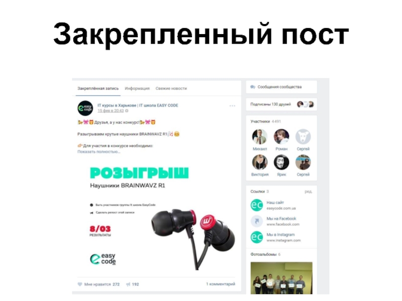 Слайд 11Использование закрепленного поста