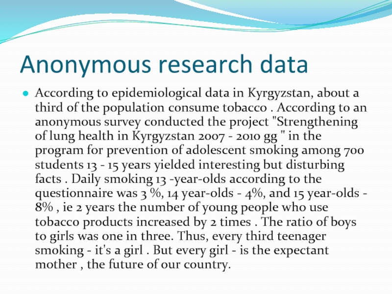 In Kyrgyzstan there is a significant increase in the number of teenagers who drink alcohol. According to tests for alcohol, which has been going for 10 months, in 2011 it was revealed that 151 of 181 teen was intoxicated, while in 2010 there were only eight teenagers in alcoholic intoxication.