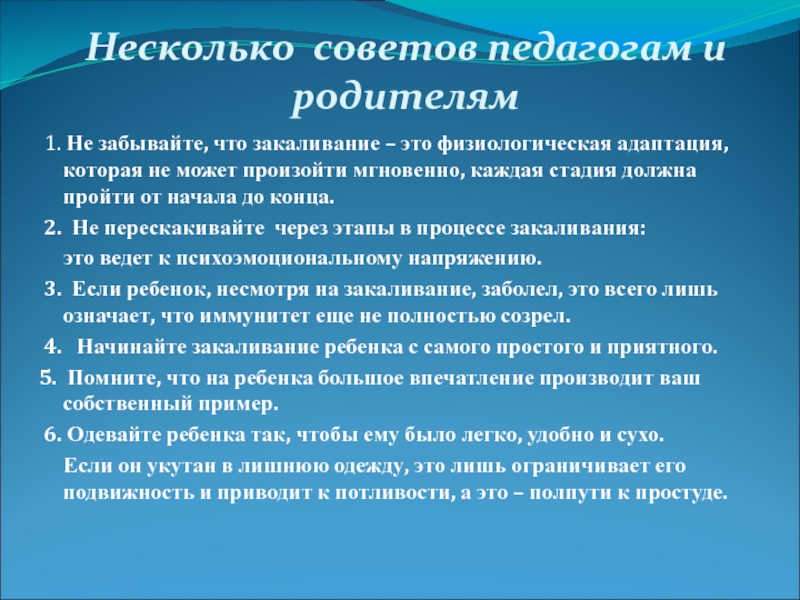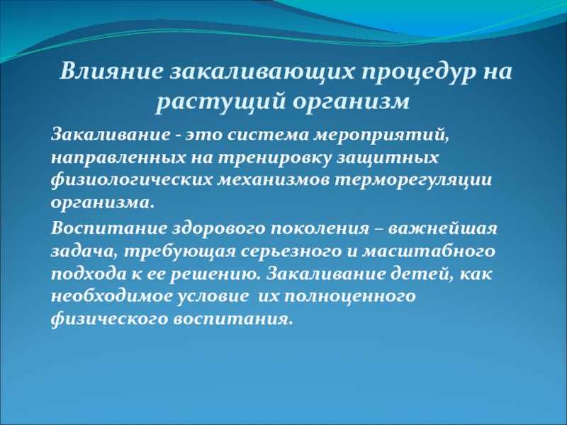 Слайд 2 Влияние закаливающих процедур на растущий организм