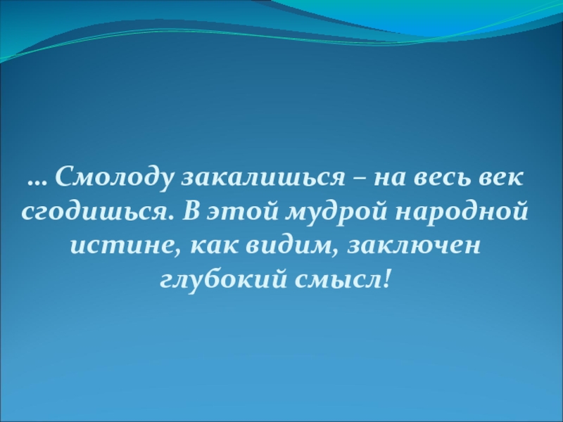 … Смолоду закалишься – на весь век сгодишься. В этой мудрой народной истине, как видим, заключен глубокий смысл!