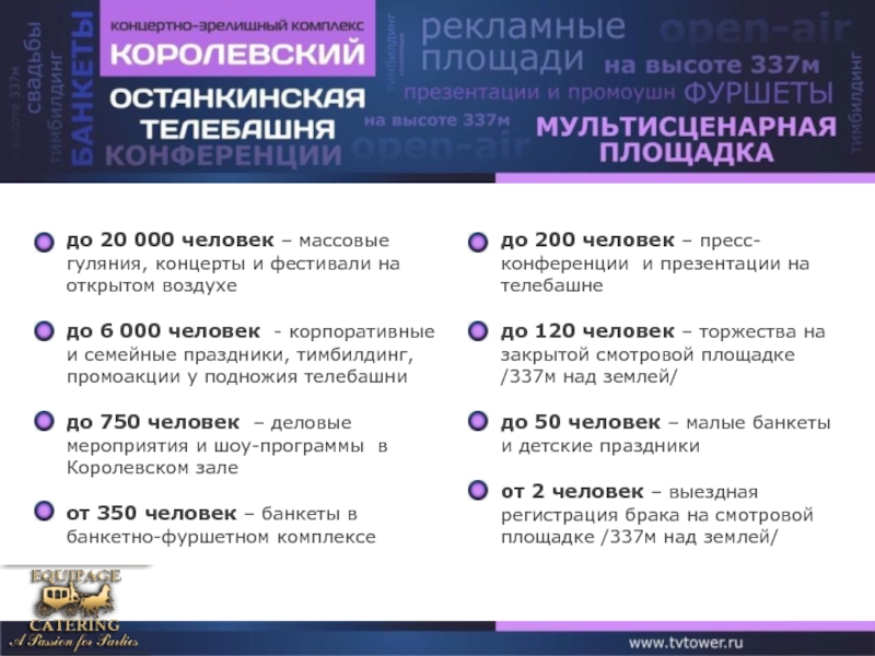 до 6 000 человек - корпоративные и семейные праздники, тимбилдинг, промоакции у подножия телебашни
