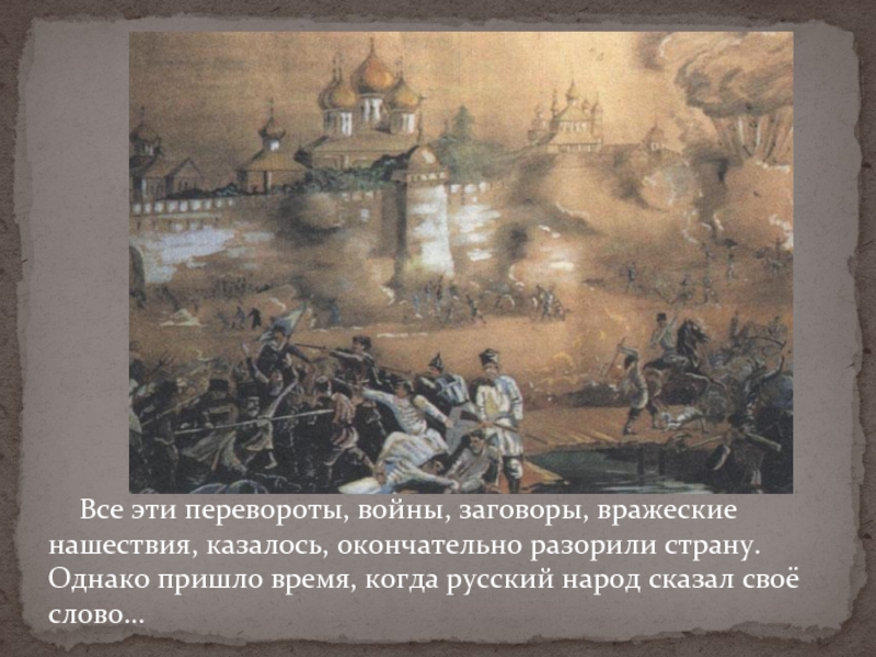 Слайд 15Все эти перевороты, войны, заговоры, вражеские нашествия, казалось, окончательно разорили страну.