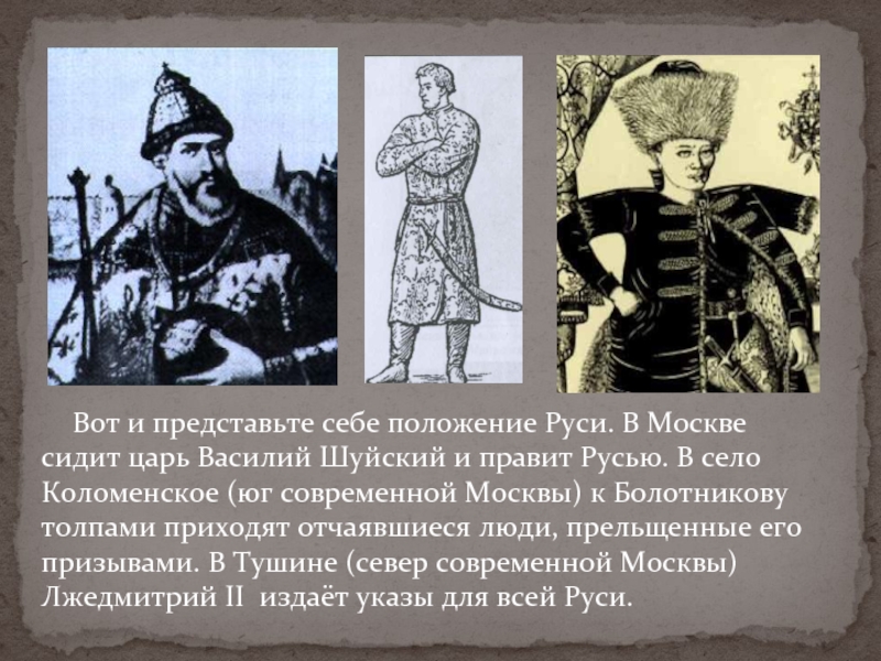 Слайд 13Вот и представьте себе положение Руси. В Москве сидит царь Василий