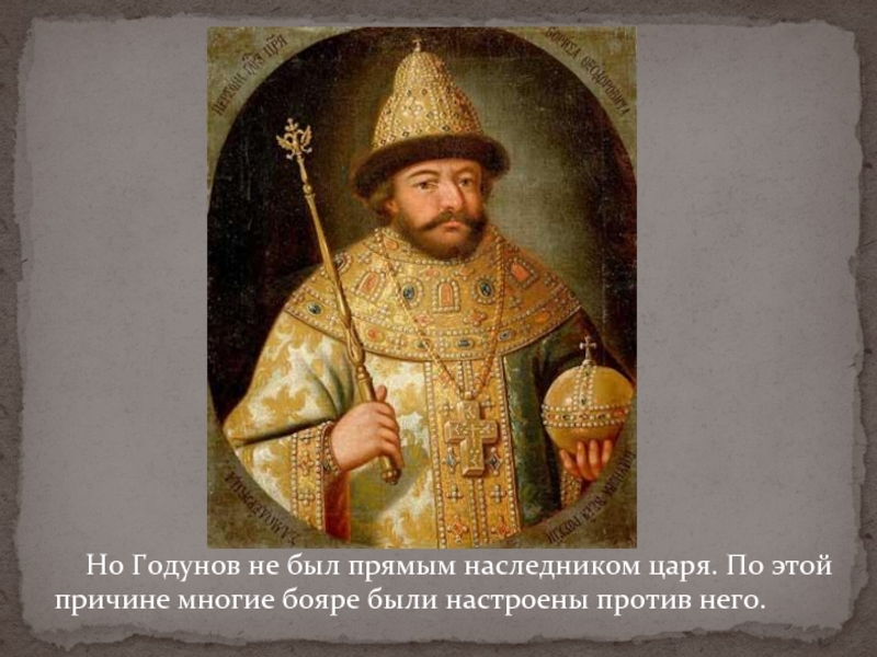 Слайд 6Но Годунов не был прямым наследником царя. По этой причине многие