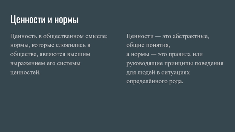 а нормы — это правила или руководящие принципы поведения для людей в ситуациях определённого рода.