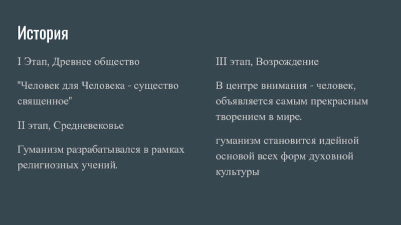 2) Идеология гуманизма исторически отражала основные этапы развития самого общества, направляла деятельность людей на достижение более высоких социальных идеалов, преодоление существующих несправедливостей, улучшение условий жизнедеятельности.
