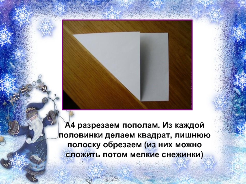 А4 разрезаем пополам. Из каждой половинки делаем квадрат, лишнюю полоску обрезаем