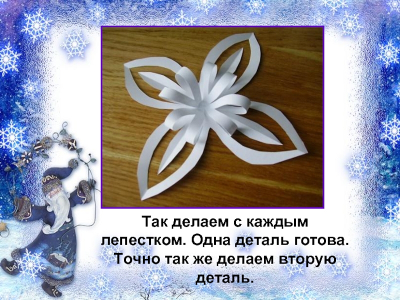 Слайд 8Так делаем с каждым лепестком. Одна деталь готова. Точно так же