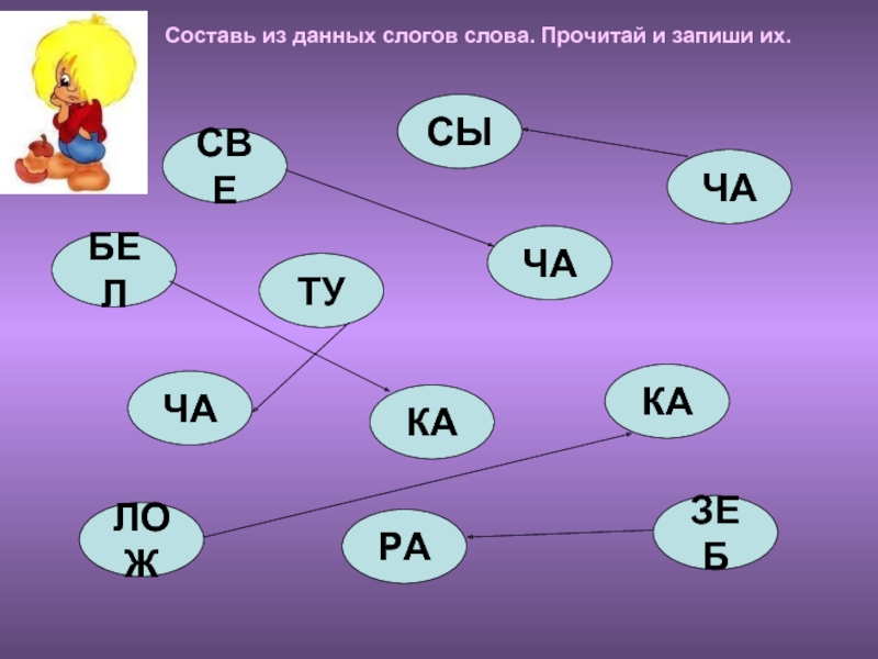 Слайд 8Составь из данных слогов слова. Прочитай и запиши их.