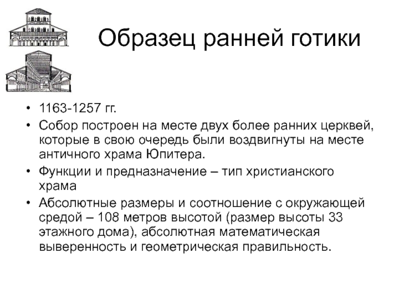 Пропорции - Пятинефная базилика (длина 130 м, ширина 108 м, высота интерьера 32,5 м) с трансептом и двумя фланкирующими западными башнями (высота 69 м).
