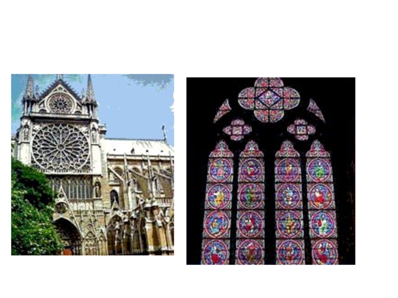 Слайд 5Материал – камень. Устремление собора ввысь выражено гигантскими ажурными башнями, стрельчатыми
