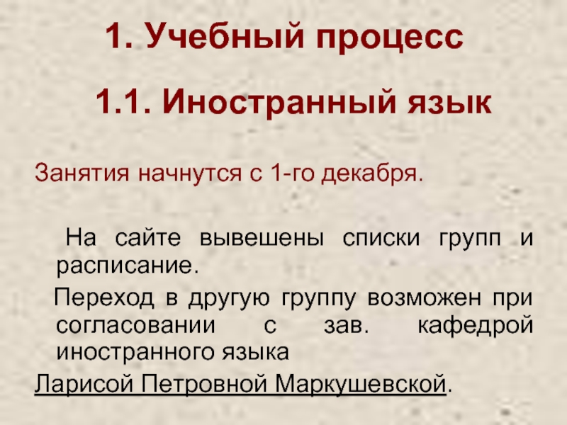 Переход в другую группу возможен при согласовании с зав. кафедрой иностранного языка