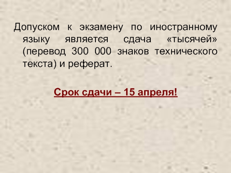 Слайд 4Допуском к экзамену по иностранному языку является сдача «тысячей» (перевод 300
