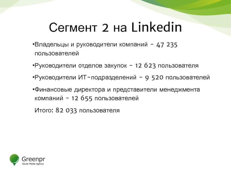 Linkedin - взаимодействие с «верхним слоем» Сегментов 2 и 3.