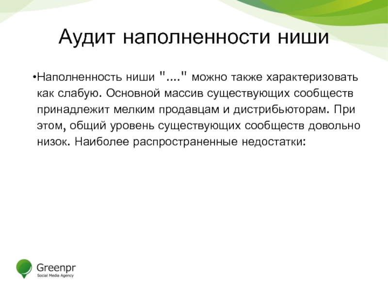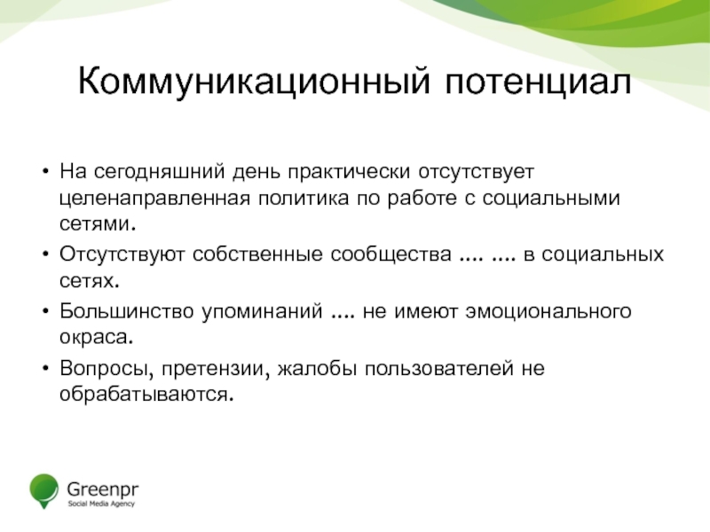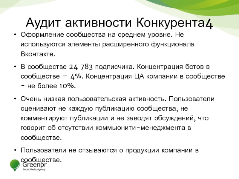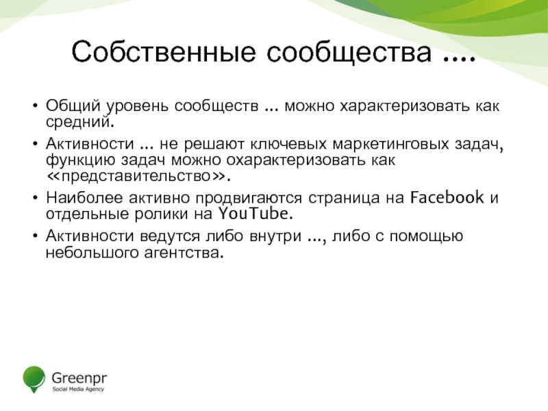 Отсутствуют собственные сообщества .... .... в социальных сетях.