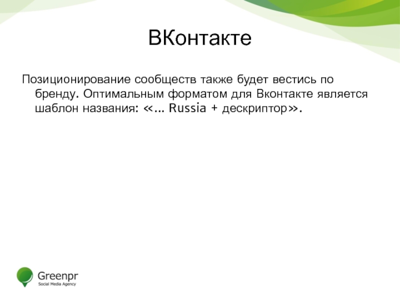 Позиционирование сообществ также будет вестись по бренду. Оптимальным форматом для Вконтакте