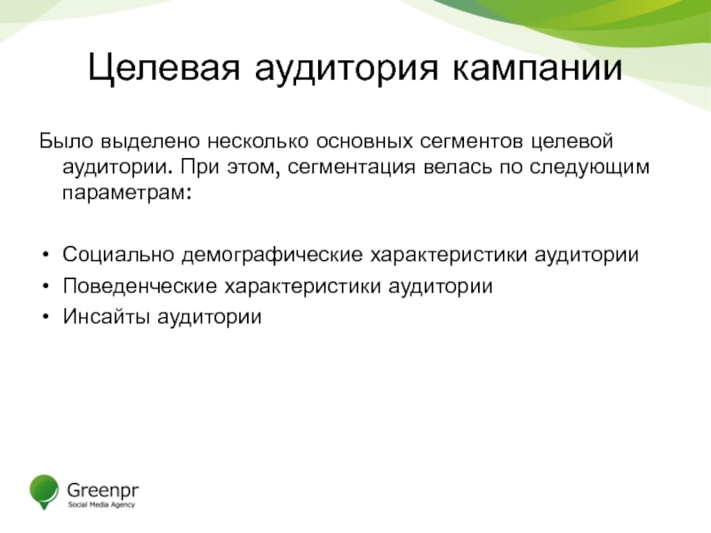 Было выделено несколько основных сегментов целевой аудитории. При этом,