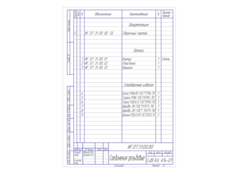 болта или шпильки при осуществлении разъемного резьбового соединения.