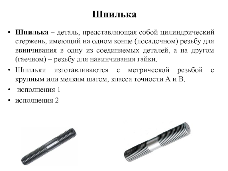 Слайд 72В соединение шпилькой входят: шпилька, гайка, шайба.