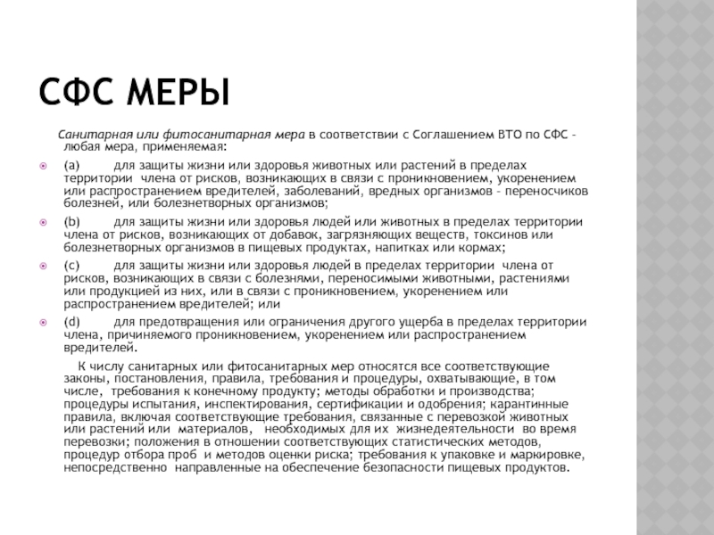 Другими словами СФС меры связаны с безопасностью продуктов питания.