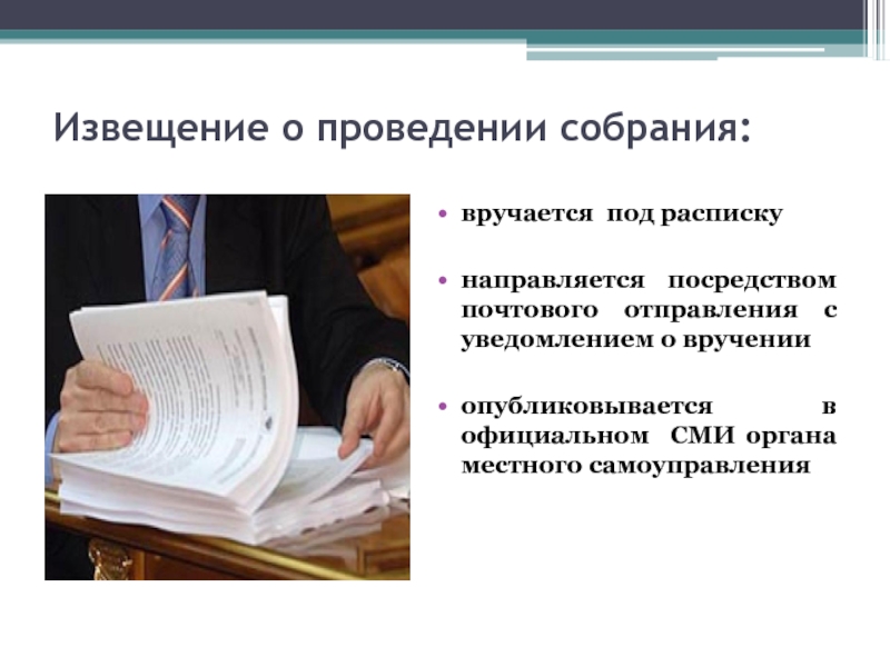 «извещение направлено почтовым отправлением с уведомлением» и дата вручения,