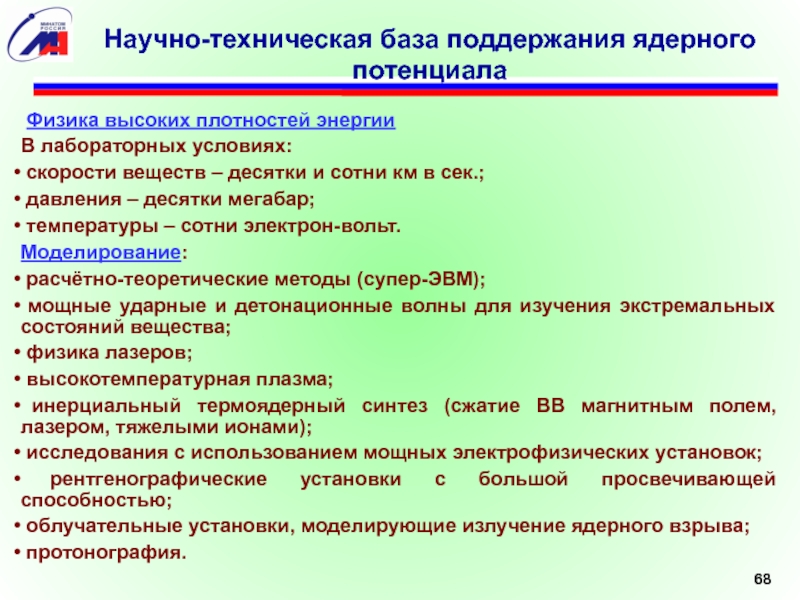 Научно-техническая база поддержания ядерного потенциала