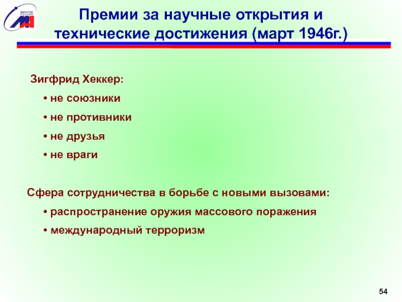 Премии за научные открытия и технические достижения (март 1946г.)