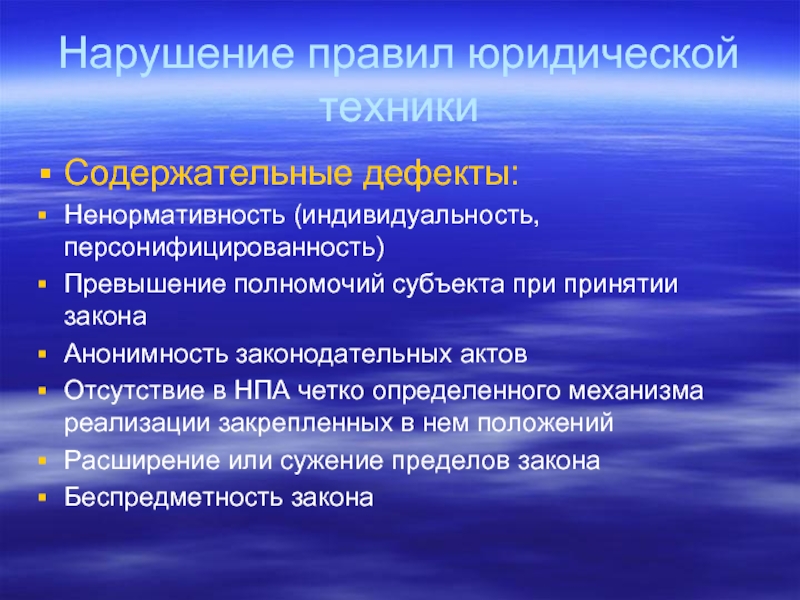 В юридических источниках встречаются различные наименования «некачественного законодательства» - «дефектное», «незаконное» и т.п.