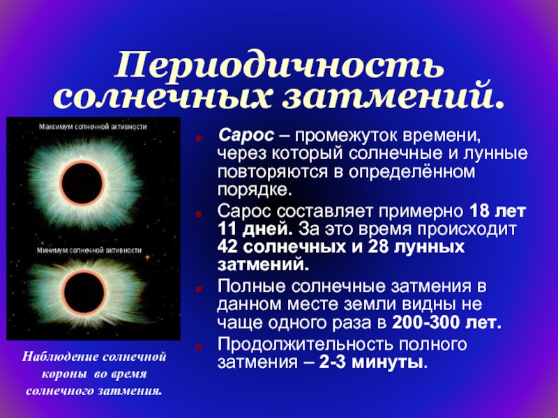Наблюдение солнечной короны во время солнечного затмения.