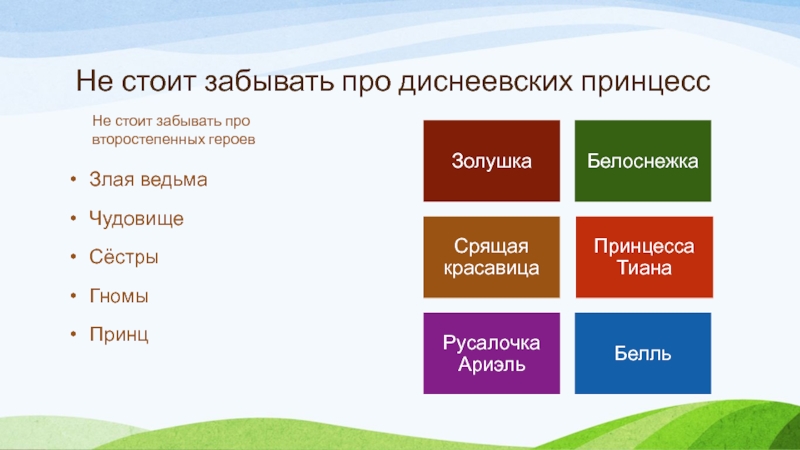 Слайд 4Не стоит забывать про диснеевских принцесс