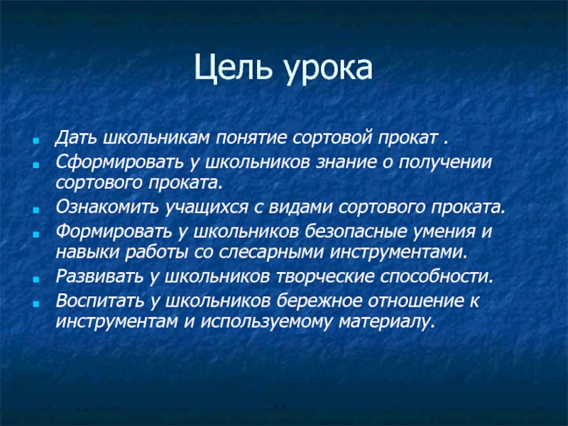 Формировать у школьников безопасные умения и навыки работы со слесарными инструментами.