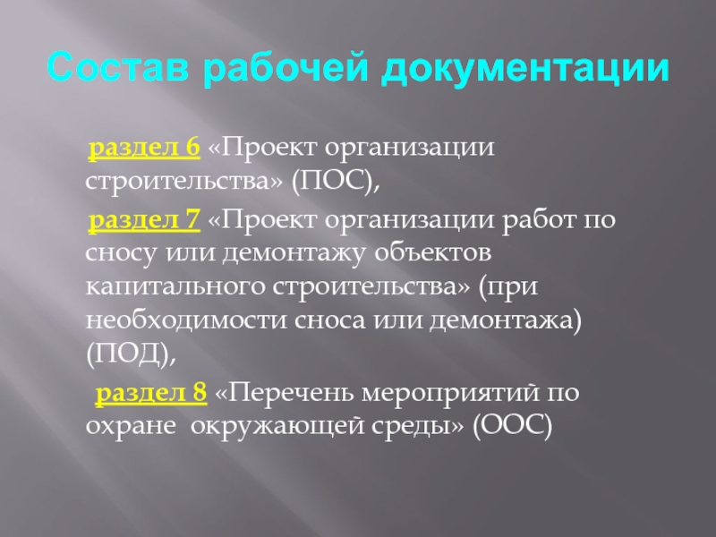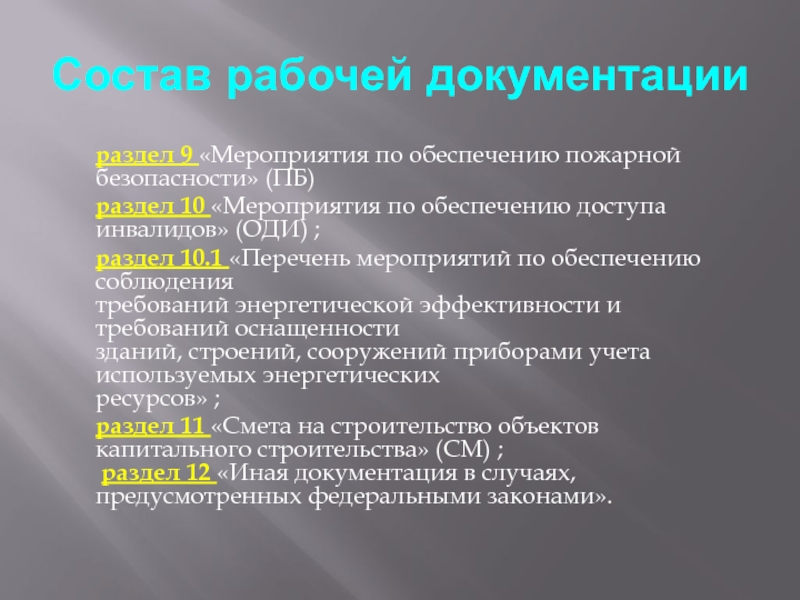 Состав рабочей документации