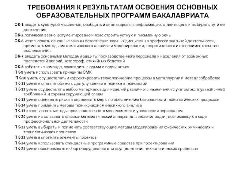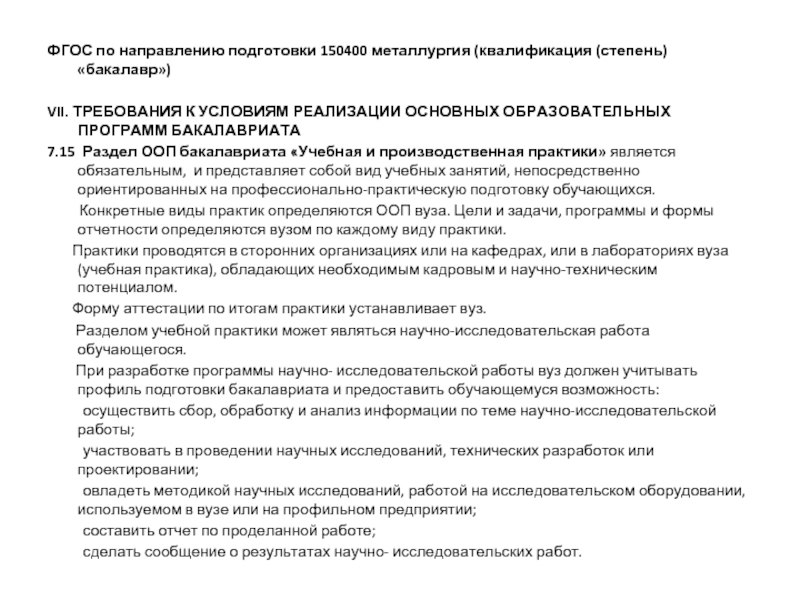 НАПРАВЛЕНИЕ БАКАЛАВРИАТА 150400 « МЕТАЛЛУРГИЯ»