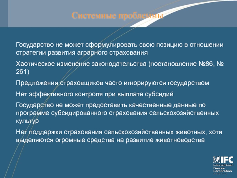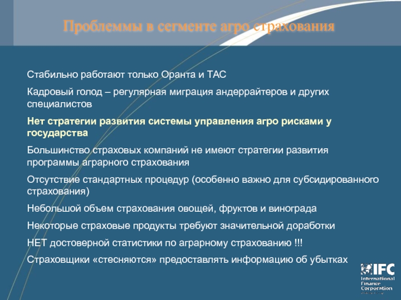 Слайд 8Проблеммы в сегменте агро страхования