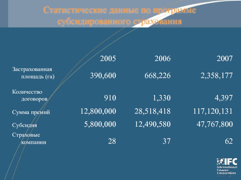 Слайд 4Статистические данные по программе субсидированного страхования