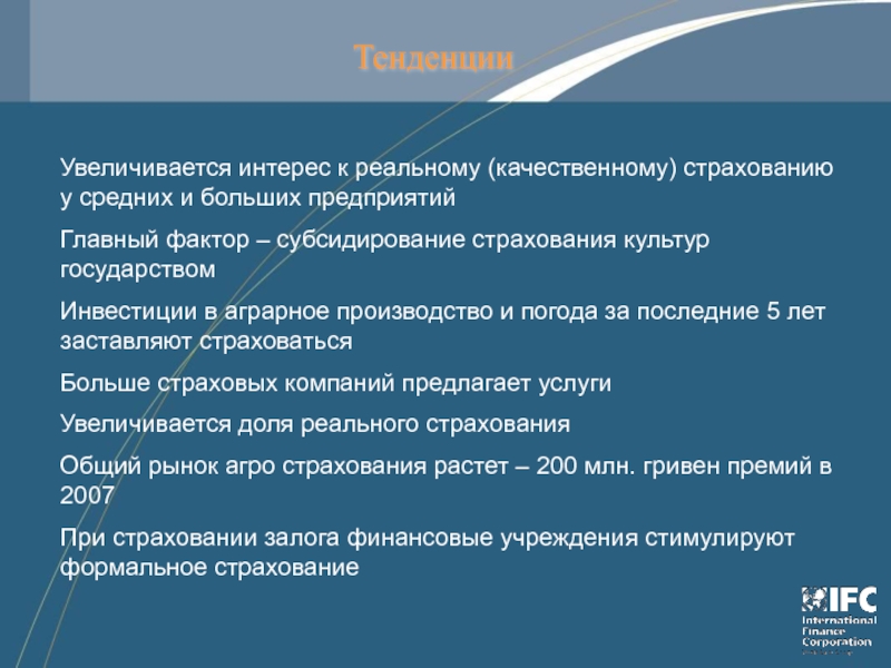 Слайд 1Состояние и тенденции рынка аграрного страхования в Украине