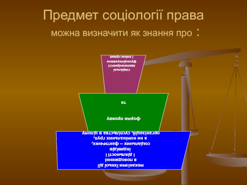 Слайд 5Предмет соціології права можна визначити як знання про :