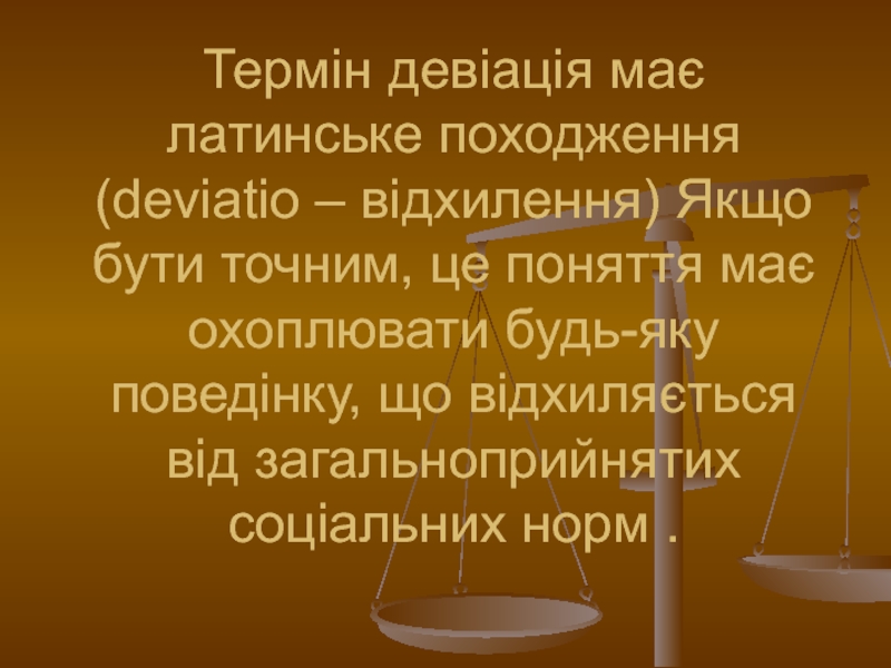 Слайд 26Термін девiацiя має латинське походження (deviatio – відхилення) Якщо бути точним,
