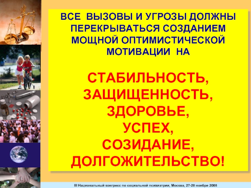 ВСЕ ВЫЗОВЫ И УГРОЗЫ ДОЛЖНЫ ПЕРЕКРЫВАТЬСЯ СОЗДАНИЕМ МОЩНОЙ ОПТИМИСТИЧЕСКОЙ МОТИВАЦИИ НА