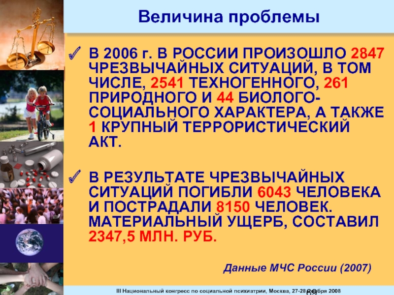 Обучение врачей-психиатров регионов России по организационным и клиническим вопросам психолого-психиатрической помощи при ЧС.